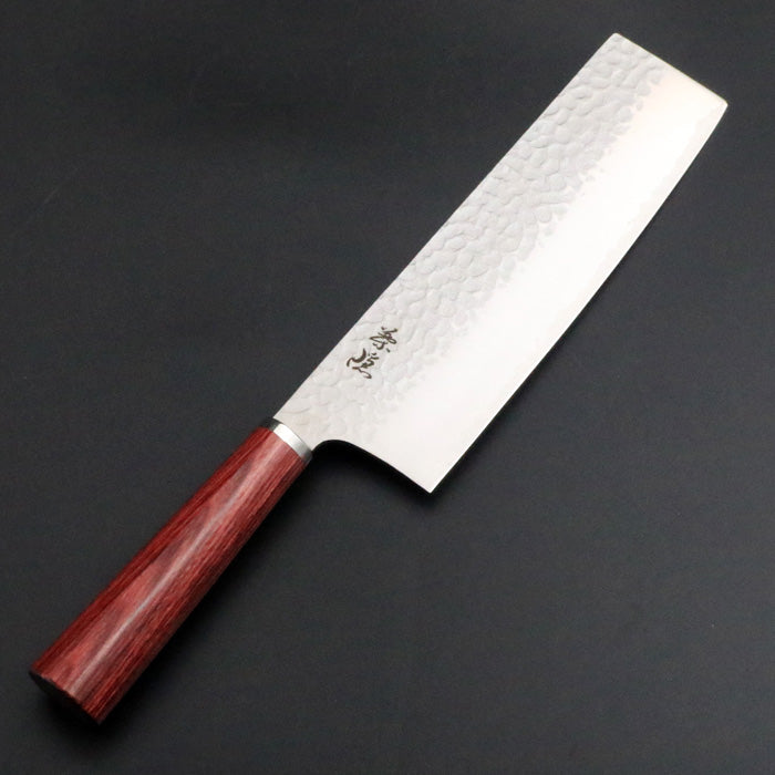 銘「葉隠」 VG10 鎚目 菜切り包丁 185mm 赤合板洋柄