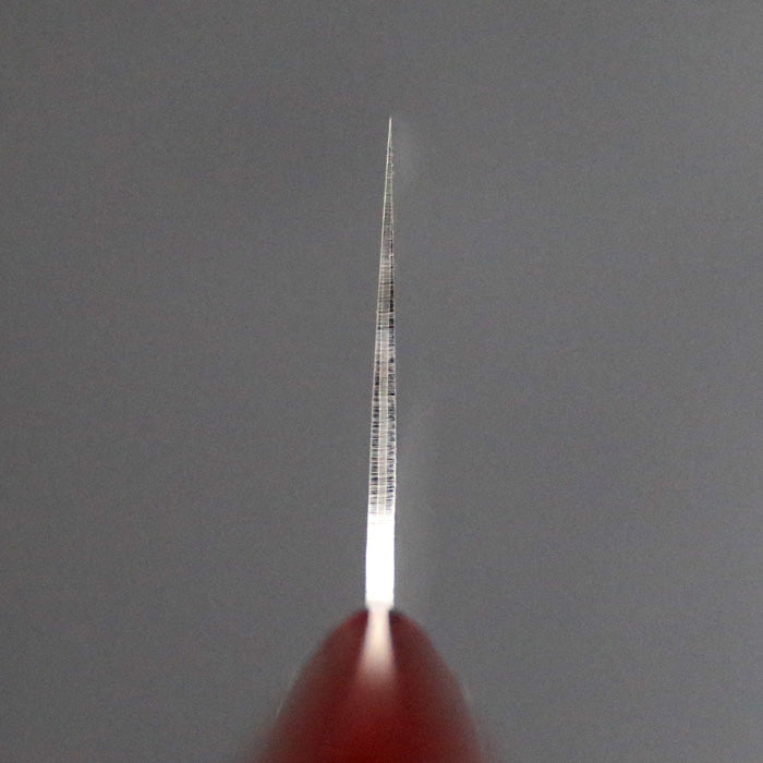 ※レーザー刻印銘「葉隠」シリーズの菜切り包丁です。柄は珍しい逆涙形(画像7枚目ご参照ください)で握りやすく長時間の使用でも疲れにくい設計になっています。