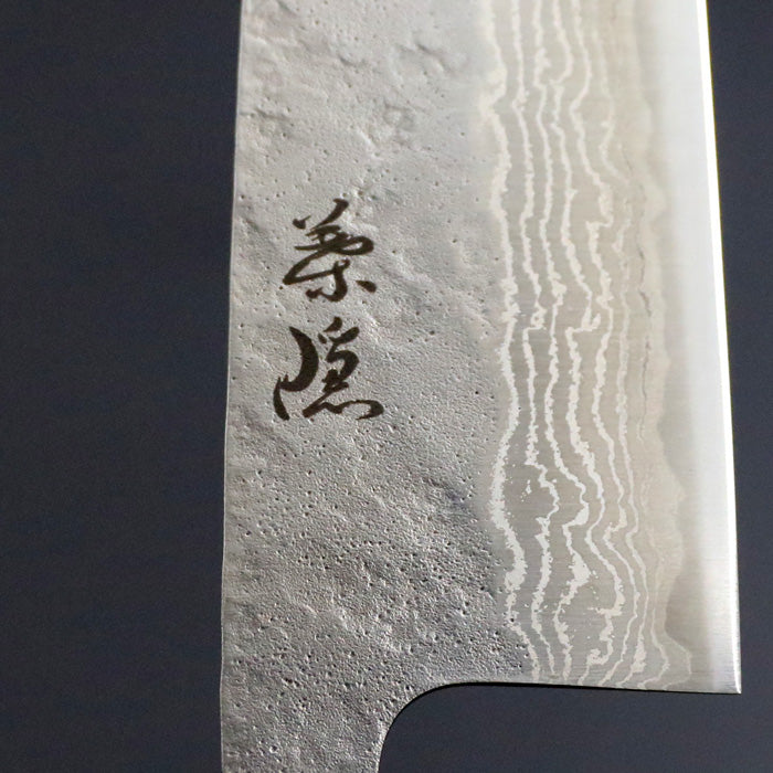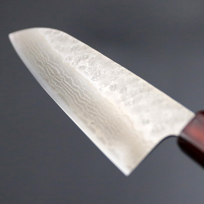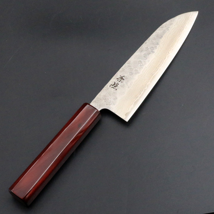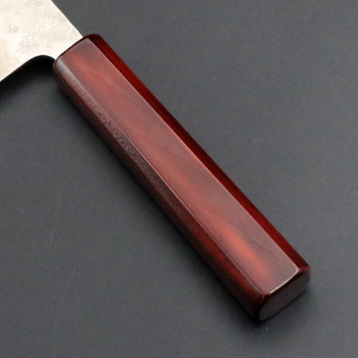 銘切り「葉隠」 オリジナル 440C ダマスカス 三徳 包丁 165mm 漆(赤溜塗り)八角柄