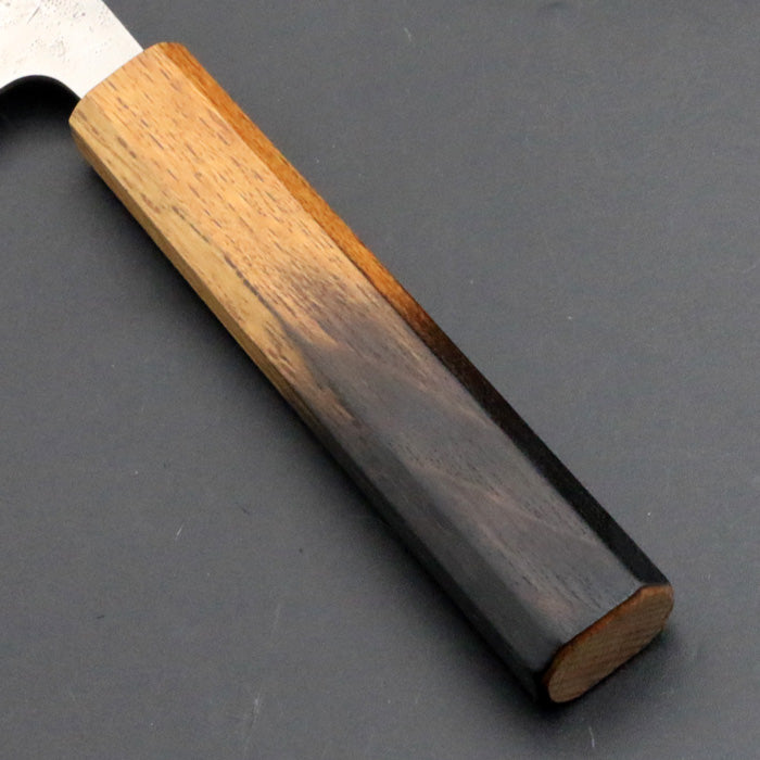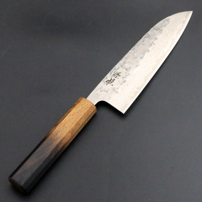 銘「葉隠」 440C 和紙地 ダマスカス オリジナル 三徳包丁 165mm 焼樫漆八角柄
