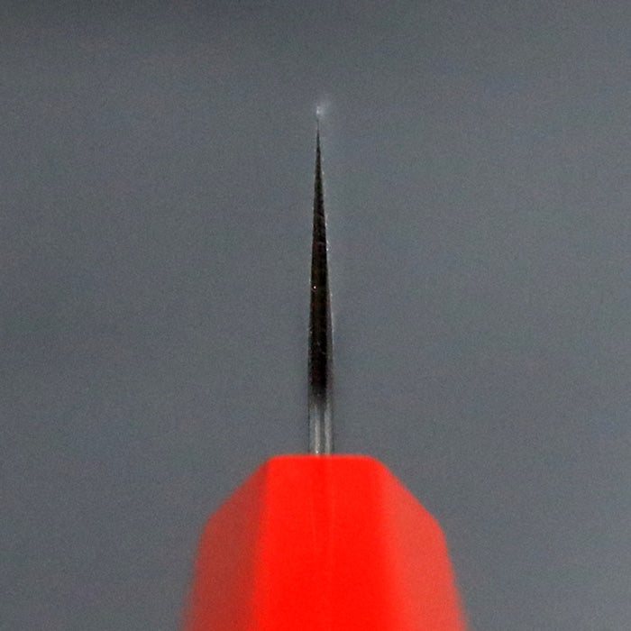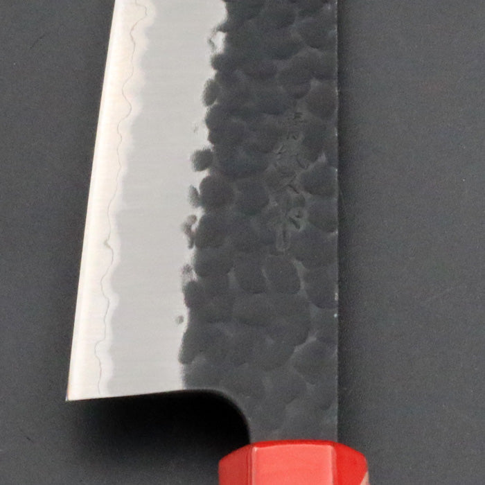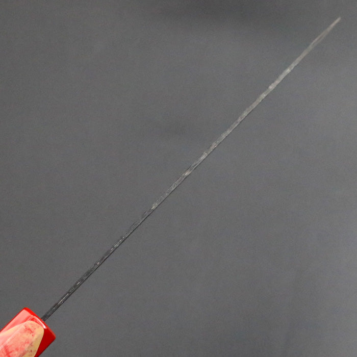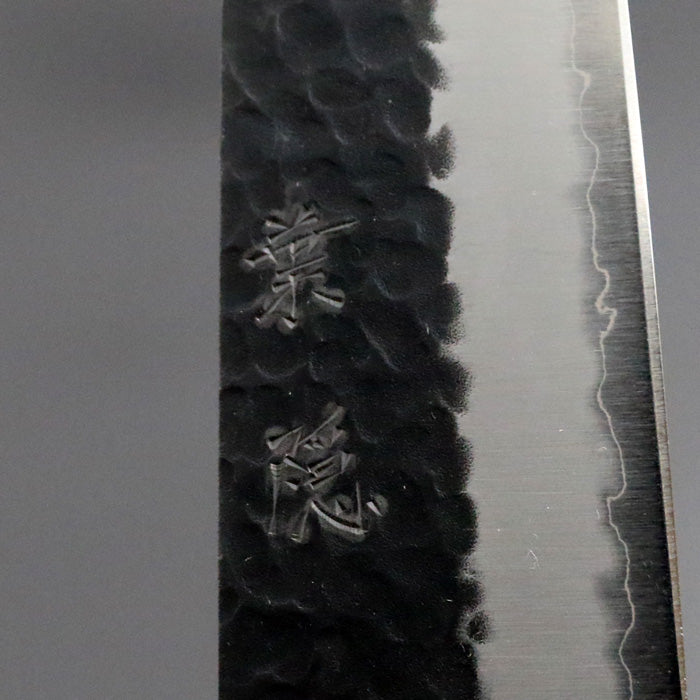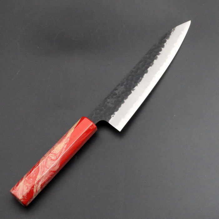 銘切り「葉隠」 オリジナル 鎚目 黒打ち 牛刀 包丁 180mm 赤白マーブル漆八角柄
