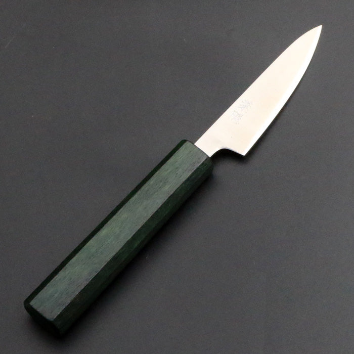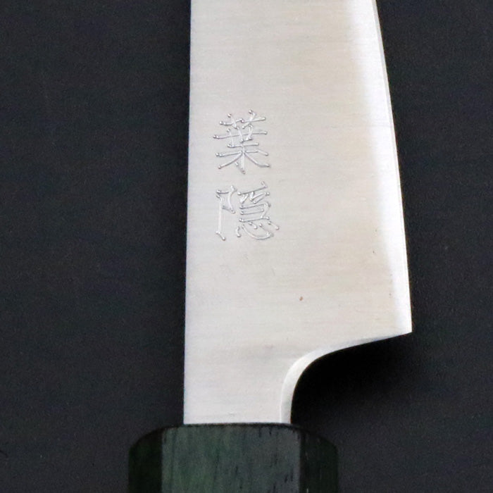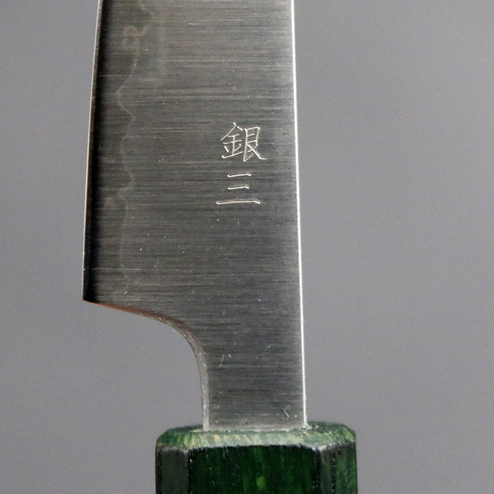 銘切り「葉隠」 銀三 磨き オリジナル ペティナイフ パーリングナイフ 85mm 緑漆八角柄