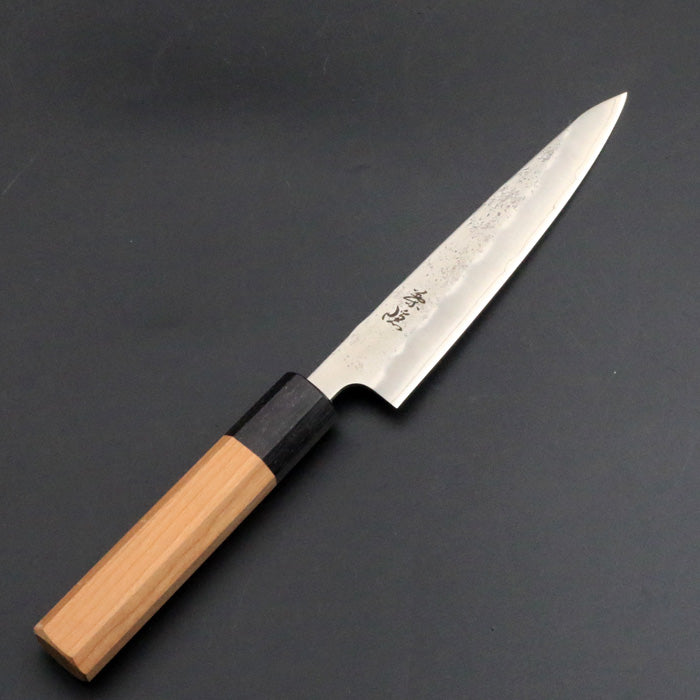 銘「葉隠」 銀三 梨地 オリジナル ペティナイフ 135mm 桜八角柄