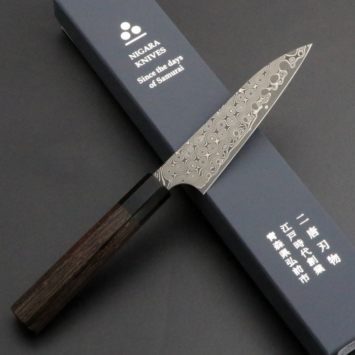 二唐刃物鍛造所 SG2 ダマスカス 暗紋 ペティ 120mm ウェンジ水牛八角柄
